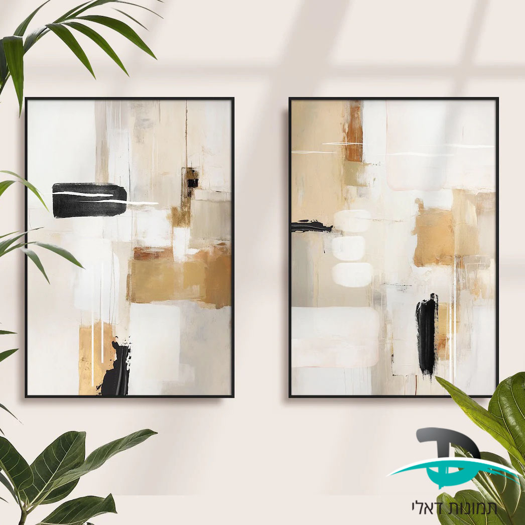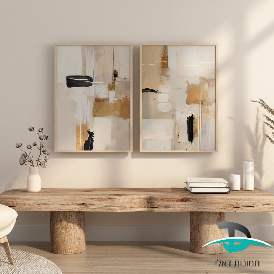 זוג תמונות אבסטרקטיות בצבעי בז’ לסלון ולמשרד דגם 4110
