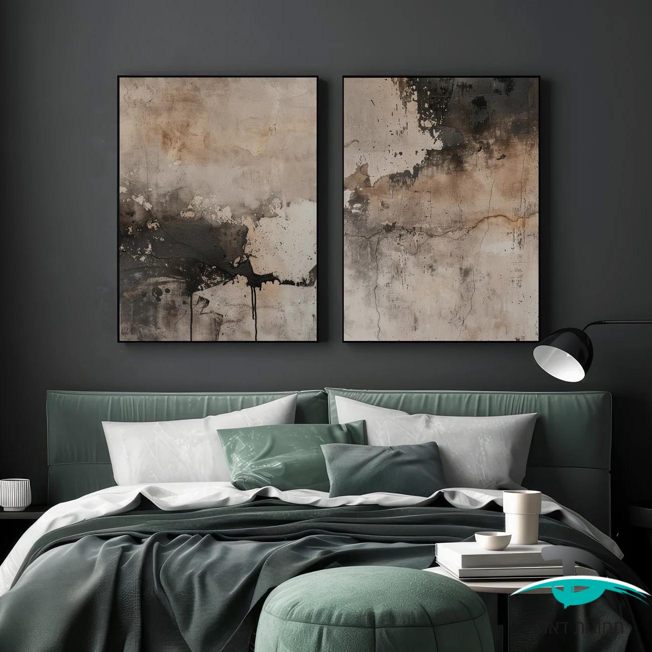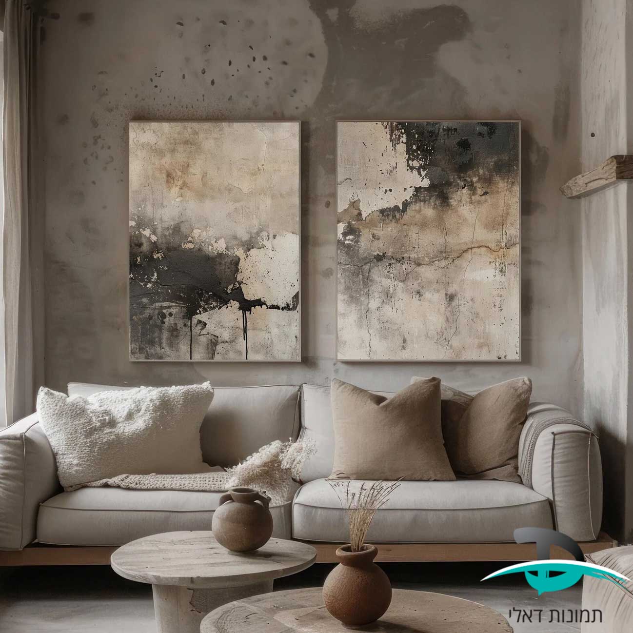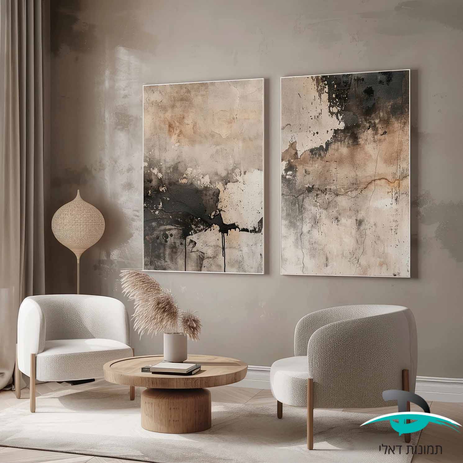 זוג תמונות בסגנון גאומטרי ומינימליסטי, מופשט בז’, שחור לסלון ולמשרד דגם 4127