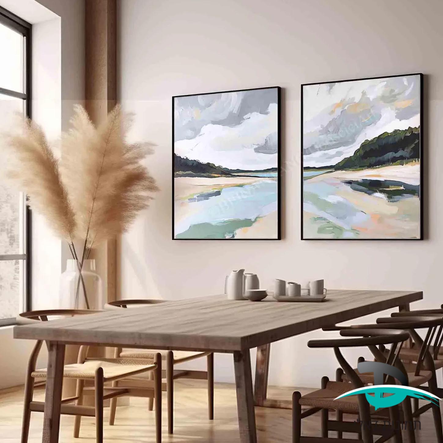 זוג תמונות בסגנון ציור שמן של נוף נהר דגם 4128