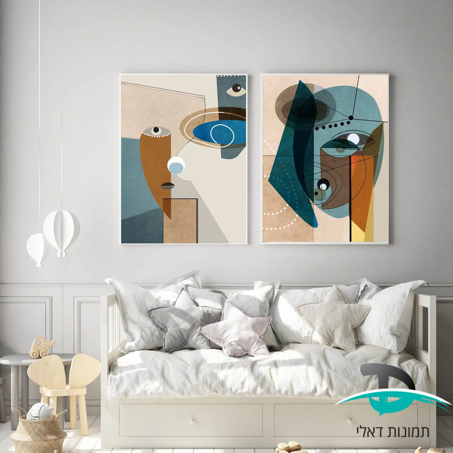 זוג תמונות דיוקן סוריאליסטי מודרני מופשט בגוונים כחולים וחומים דגם 4161