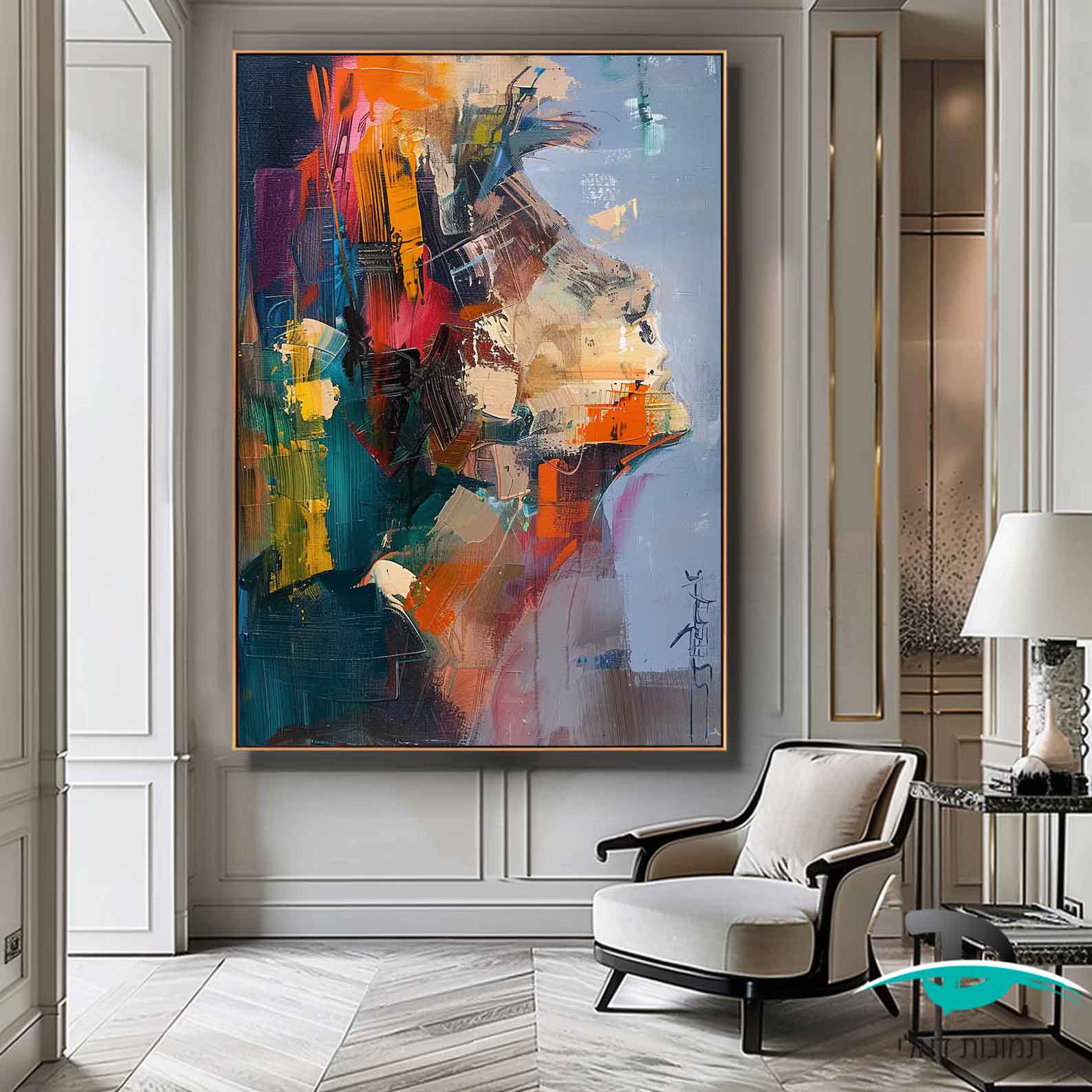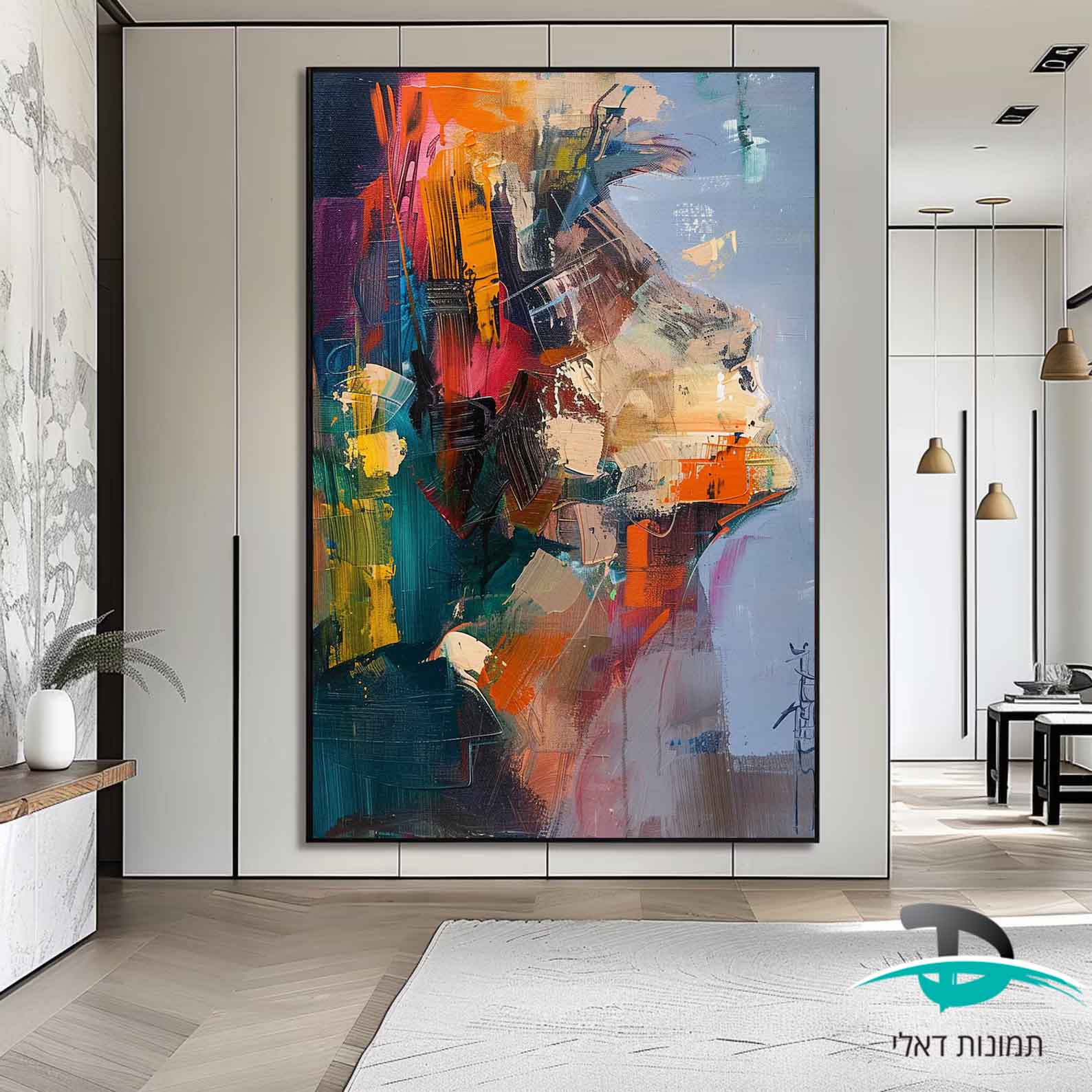 תמונה מופשטת בסגנון ציור שמן של פנים נשיות לסלון או למשרד דגם 4138